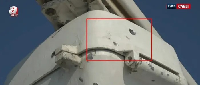 Ο Αϊγλούν, που δείχνει το χτυπημένο κατάρτι της κεραίας, υποστηρίζει: